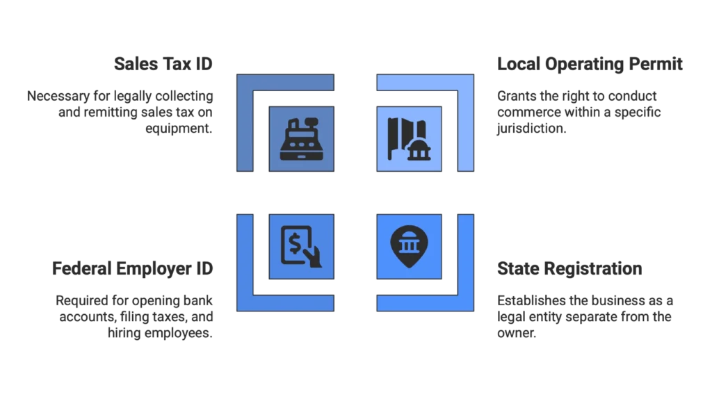- Sales Tax ID: If you sell equipment, you must obtain a state sales tax permit to legally collect and remit sales tax.